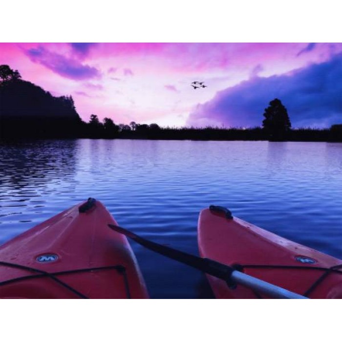 Create your own shimmering DIY wall art, one "diamond" at a time! This gorgeous full drill Diamond Painting Kit is entitled "Kayak Tranquility" and includes everything you need to get started!