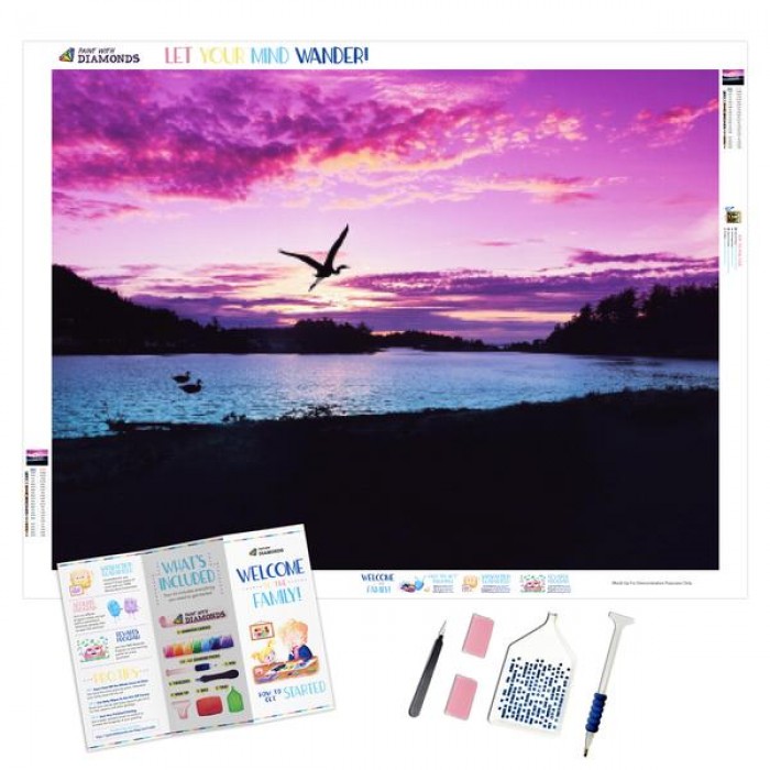 Create your own shimmering DIY wall art, one "diamond" at a time! This gorgeous full drill Diamond Painting Kit is entitled "Purple Cloudy Dawn" and includes everything you need to get started!