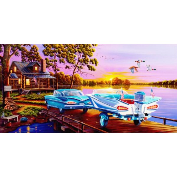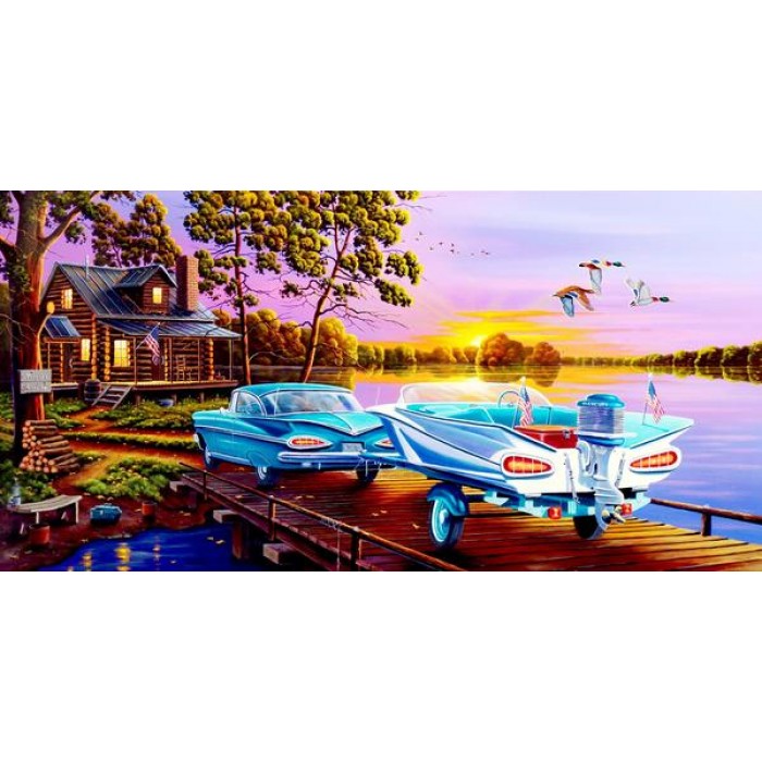 Feel the satisfaction of watching your Diamond Painting come together before your very eyes. This gorgeous artwork entitled "Gone Fishin" by artist Geno Peoples is now available as a Full Drill Diamond Painting Kit in your choice of Square or Round Diamonds.