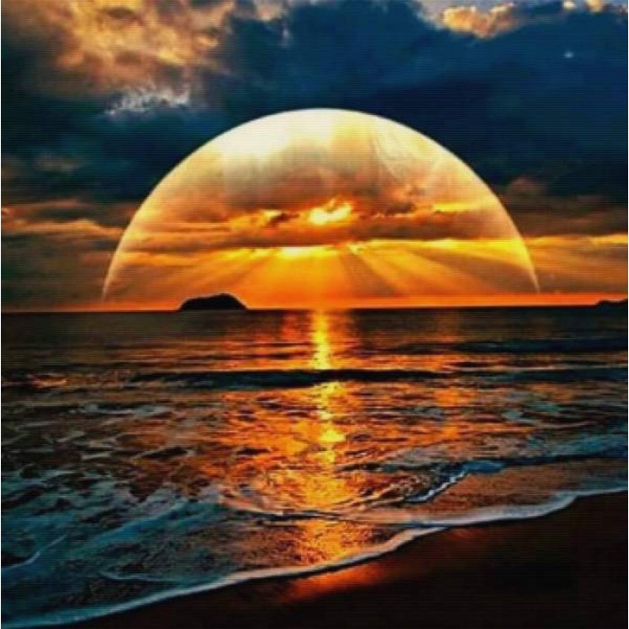 Create your own shimmering DIY wall art, one "diamond" at a time! This gorgeous full drill Diamond Painting Kit is entitled "Sunset Arc" and includes everything you need to get started!
