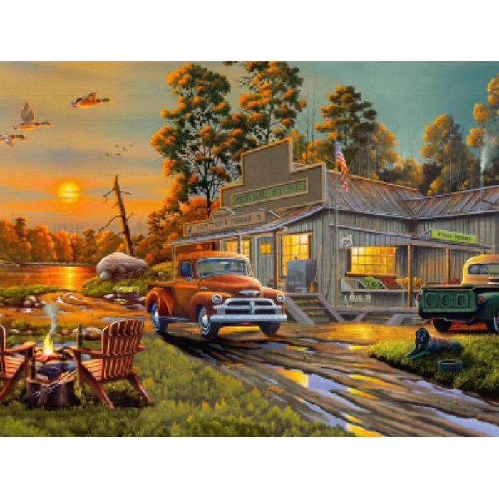 Feel the satisfaction of watching your Diamond Painting come together before your very eyes. This gorgeous artwork entitled "On the Lake General Store" by artist Geno Peoples is now available as a Full Drill Diamond Painting Kit in your choice of Square or Round Diamonds.