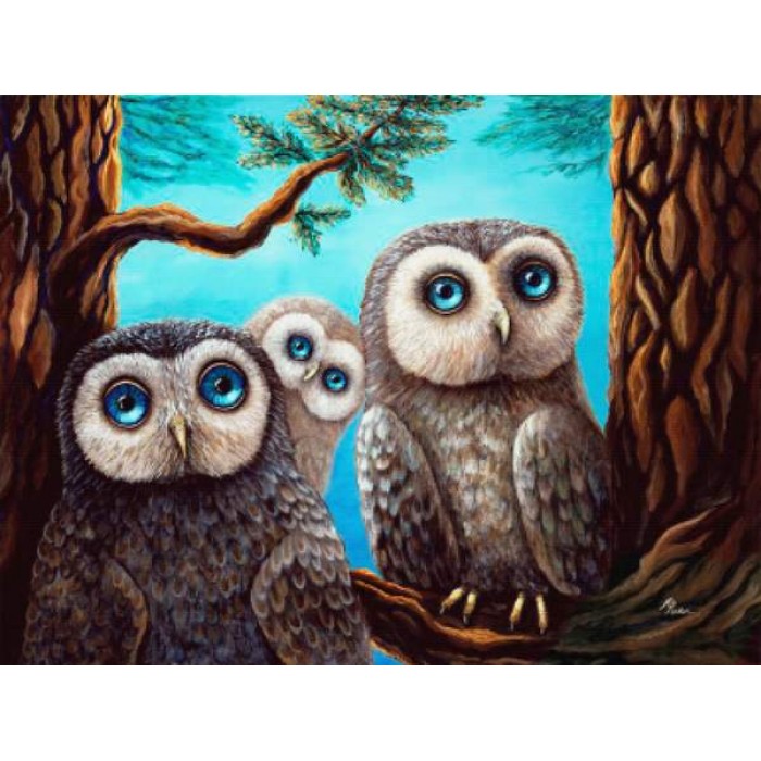 Create your own shimmering DIY wall art, one "diamond" at a time! This gorgeous full drill Diamond Painting Kit is entitled "Three Little Hoots" and includes everything you need to get started!