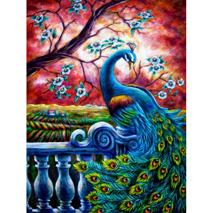 Create your own shimmering DIY wall art, one "diamond" at a time! This gorgeous full drill Diamond Painting Kit is entitled "Proud Peacock" and includes everything you need to get started!