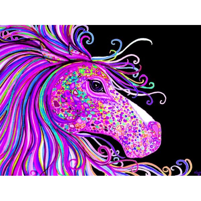 Create your own shimmering DIY wall art, one "diamond" at a time! This gorgeous full drill Diamond Painting Kit is entitled "Rainbow Spotted Horse Hea..