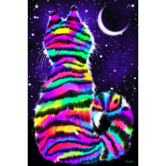 Create your own shimmering DIY wall art, one "diamond" at a time! This gorgeous full drill Diamond Painting Kit is entitled "Rainbow Tiger Cat" and includes everything you need to get started!