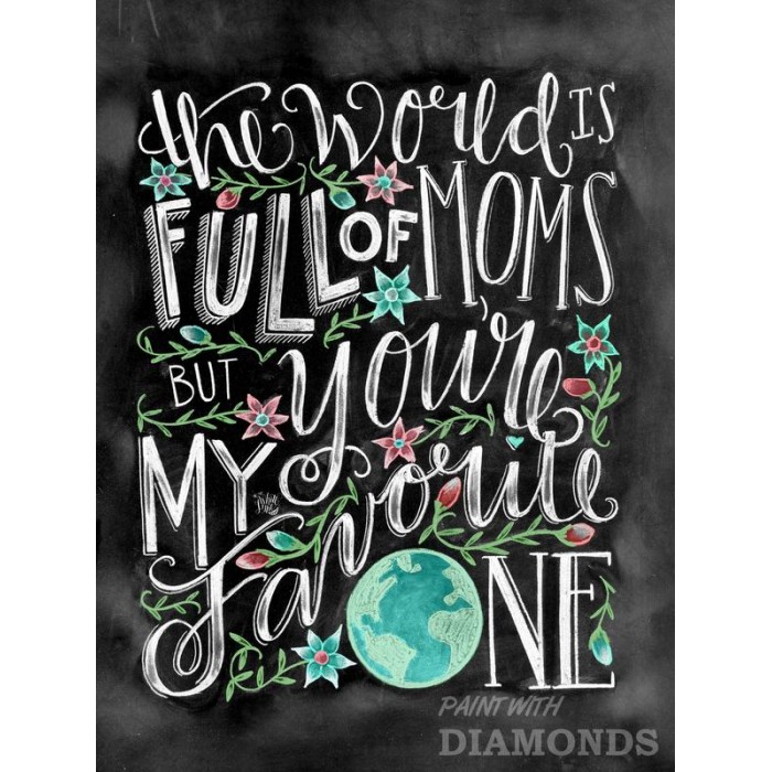 Feel the satisfaction of watching your Diamond Painting come together before your very eyes. This gorgeous artwork entitled "The World is Full Of Moms" by artist Shannon Roberts is now available as a Full Drill Diamond Painting Kit in your choice of Square or Round Diamonds.