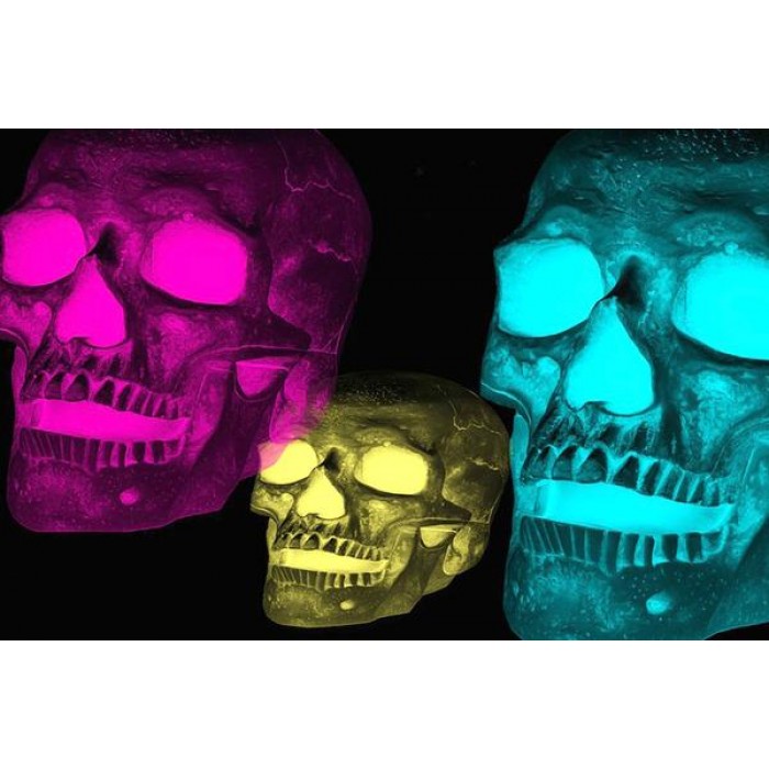 Create your own shimmering DIY wall art, one "diamond" at a time! This gorgeous full drill Diamond Painting Kit is entitled "Tri Chrome Skulls" and includes everything you need to get started!