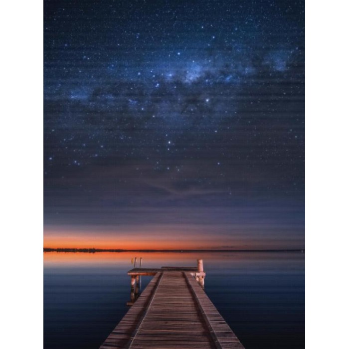 Create your own shimmering DIY wall art, one "diamond" at a time! This gorgeous full drill Diamond Painting Kit is entitled "Pier Under The Stars" and..