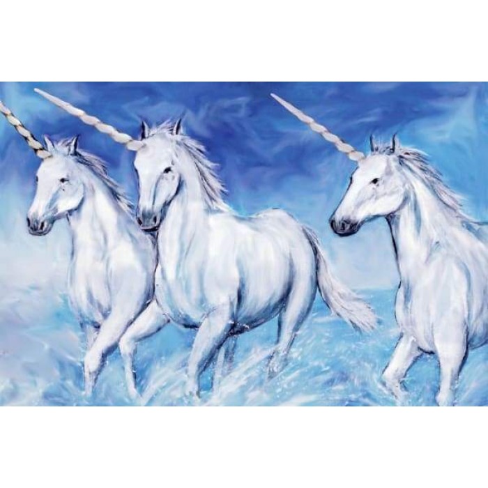 Create your own shimmering DIY wall art, one "diamond" at a time! This gorgeous full drill Diamond Painting Kit is entitled "Three Unicorns" and includes everything you need to get started!