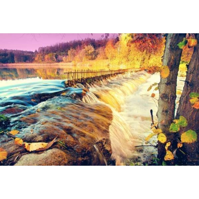 Create your own shimmering DIY wall art, one "diamond" at a time! This gorgeous full drill Diamond Painting Kit is entitled "Autumn River Waterfall" and includes everything you need to get started!