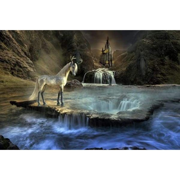 Create your own shimmering DIY wall art, one "diamond" at a time! This gorgeous full drill Diamond Painting Kit is entitled "Unicorn Waterfall" and includes everything you need to get started!