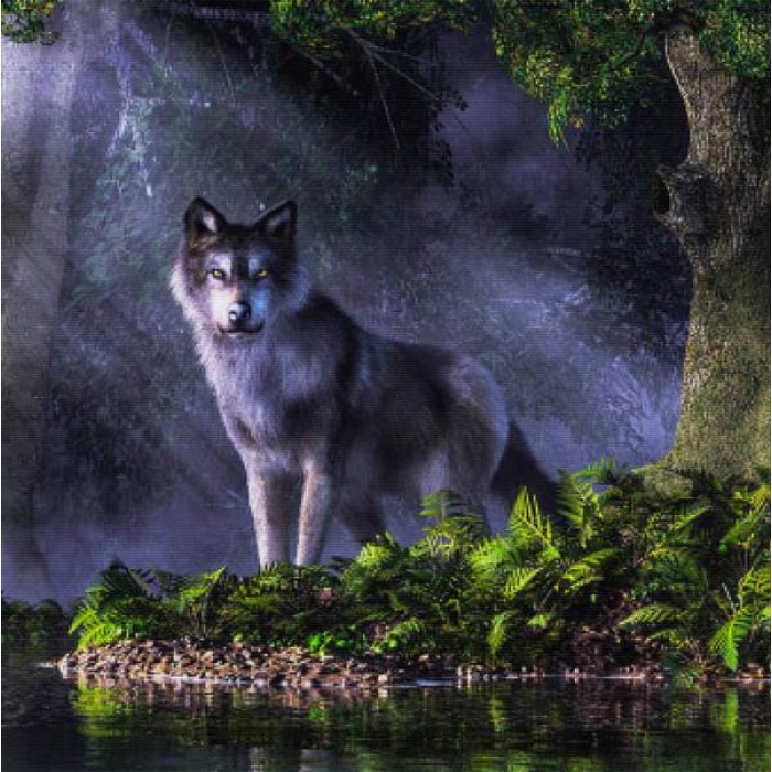 Create your own shimmering DIY wall art, one "diamond" at a time! This gorgeous full drill Diamond Painting Kit is entitled "Wolf In The Forest" and includes everything you need to get started!