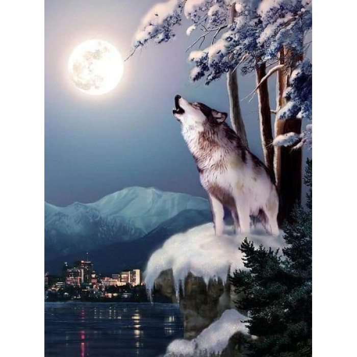 Create your own shimmering DIY wall art, one "diamond" at a time! This gorgeous full drill Diamond Painting Kit is entitled "Wolf On The Doorstep Of Civilization" and includes everything you need to get started!